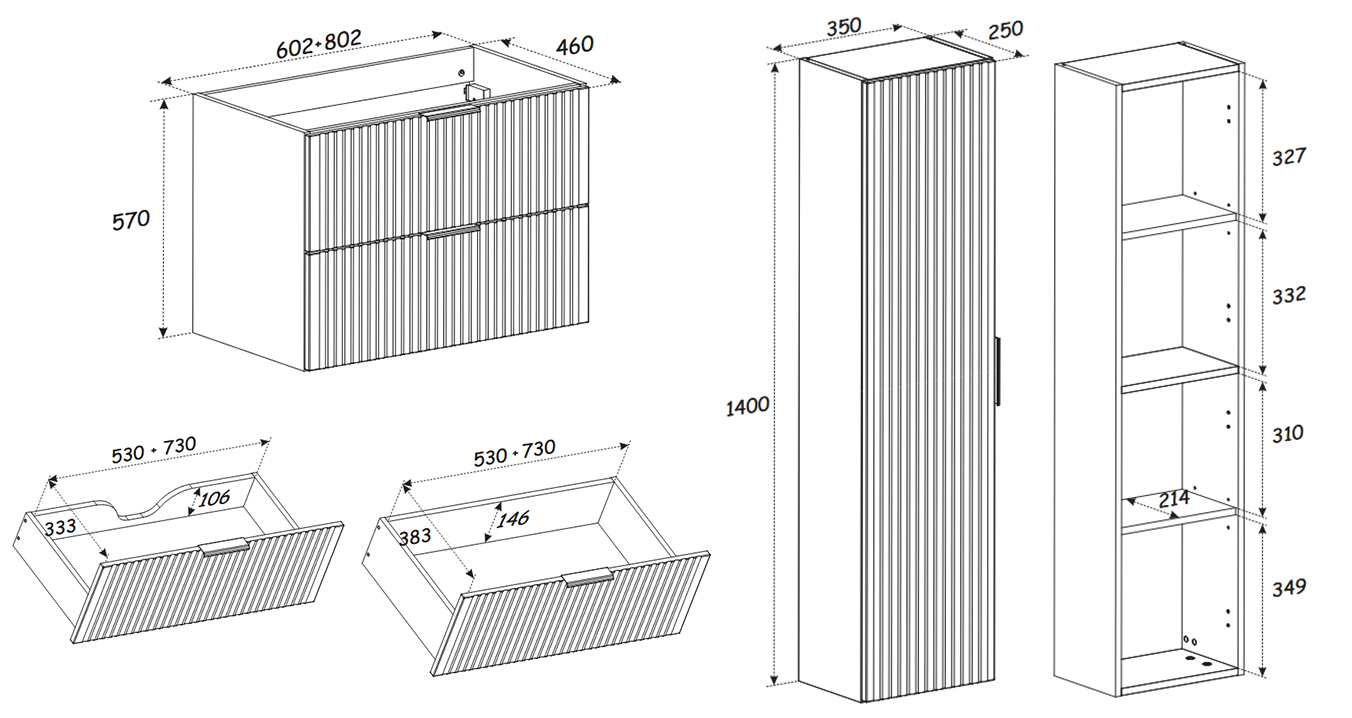 V neposlednom rade súprava obsahuje vysokú kúpeľňovú skrinku Adel Black v čiernej farbe, ktorá ponúka dostatok úložného priestoru na uteráky, kozmetiku a ďalšie nevyhnutné veci. Jej štíhly, výklopný dizajn dokonale dopĺňa ostatné prvky súpravy a prispieva k čistému a organizovanému vzhľadu kúpeľne.