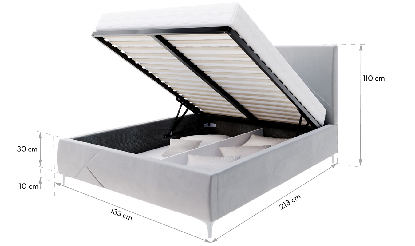 Udržujte poriadok v spálni a využite priestor naplno. Praktickú stránku postele NAVARO poskytuje priestranný úložný priestor na posteľnú bielizeň, ktorý možno využiť na uloženie rôznych predmetov, ako je sezónne oblečenie alebo textil. Mechanizmus plynového zdvíhacieho roštu umožňuje jednoduché a bezpečné využitie úložného priestoru.